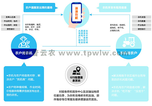 ?????? 针对现今农机与农户间信息不对称,许多农机仅局限于本合作社或本区域作业,农户无法及时找到农机手进行耕收等问题,托普云农开发了“滴滴农机”APP,通过预约服务方式,农户将作业内容等需求信息发布后,附近农机手即可直接接单,从而有效解决农机闲置问题,提升耕种收割效率。同时借助“滴滴农机”手机APP可拓展更多农业服务内容,包括农资购买、农产品销售、金融等服务。
