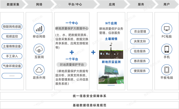 利用“1+1+N”模式,通过信息技术,构建标准化、规范化的耕地质量管理信息系统,构建一个耕地质量?;ご笫葜行模桓龈刂柿勘;ご笫萜教ê蚇个业务子系统。