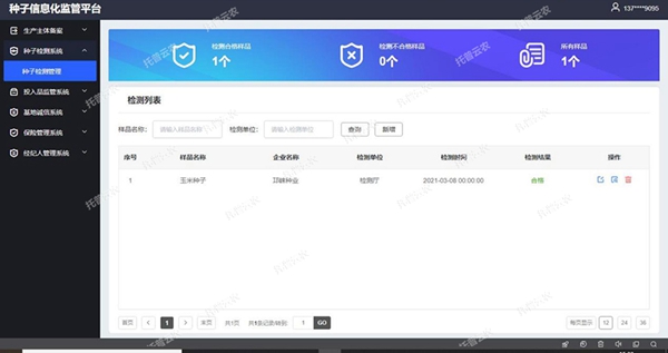 4、种业服务管理:种业服务平台立足于服务管理,提供多种专题分析模块,助力于解决种业发展过程中因品种与技术更新不匹配,种子质量参差不齐、种业知识获取有限等问题,平台的建立可进一步科学提高农业推广中种子管理服务工作的水平与效率。